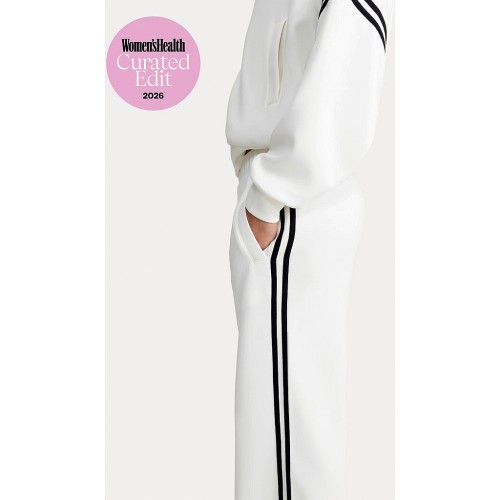 Active Side Stripe Wide Leg Joggers in Cream