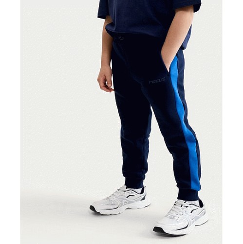 F&F Boys Cotton Rich Side Stripe Cuffed Joggers in Navy