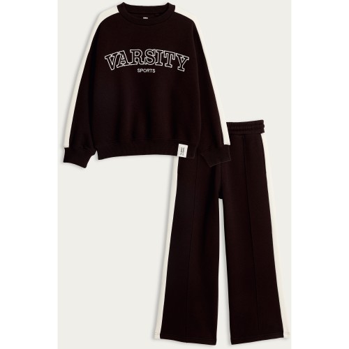 F&F Active Girls AFTERCLASS 2-Piece Slogan Sweatshirt and Joggers Set in Brown