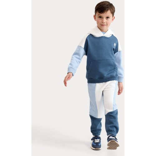 F&F Boys 2-Piece Cotton Rich Colour Block Hoodie and Joggers Set in Blue