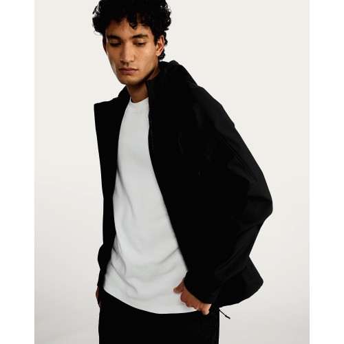 Hooded Zip Up Shower Resistant Jacket in Black