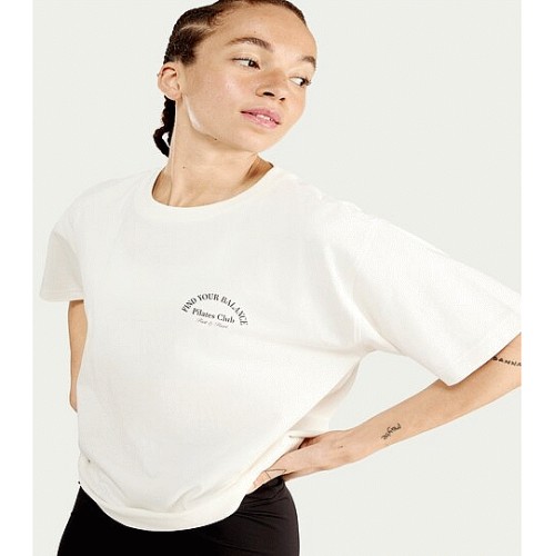 Active EVERYHOUR Pure Cotton Pilates Club Oversized Fit T-Shirt in Cream