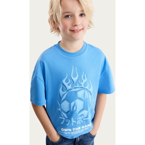 F&F Boys Pure Cotton Printed Oversized Fit T-Shirt in Blue