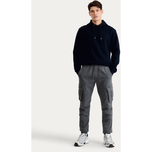 Cotton Rich Drawstring Cuffed Cargo Joggers in Grey Marl