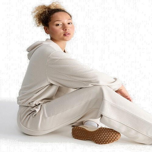Active Ribbed Wide Leg Drawstring Joggers in Neutral