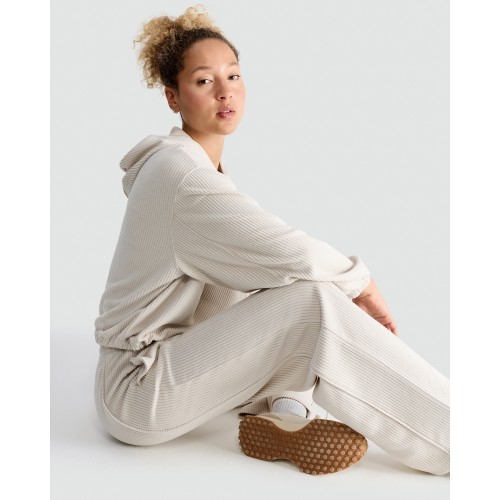 Active Ribbed Wide Leg Drawstring Joggers in Cream