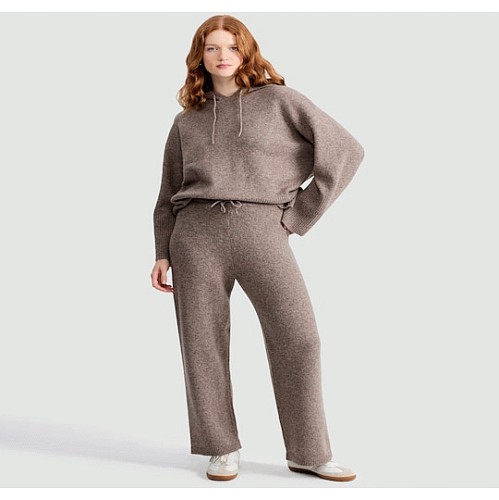 Textured Wide Leg Drawstring Co-ord Joggers with Wool in Mink