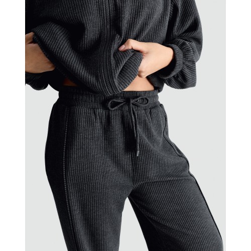 Active Ribbed Wide Leg Drawstring Joggers in Grey