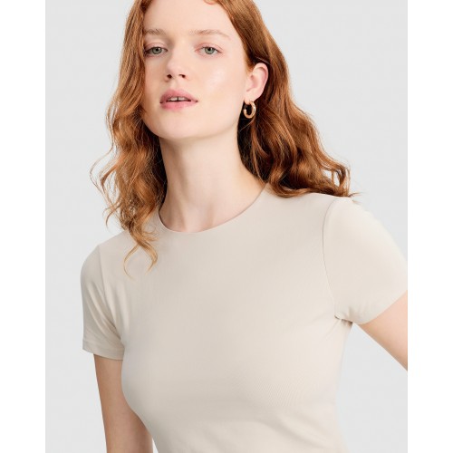 Polyamide Crew Neck Short Sleeved T-Shirt in Sand