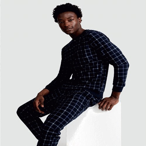 Fleece Check Top and Cuffed Joggers Lounge Set in Blue