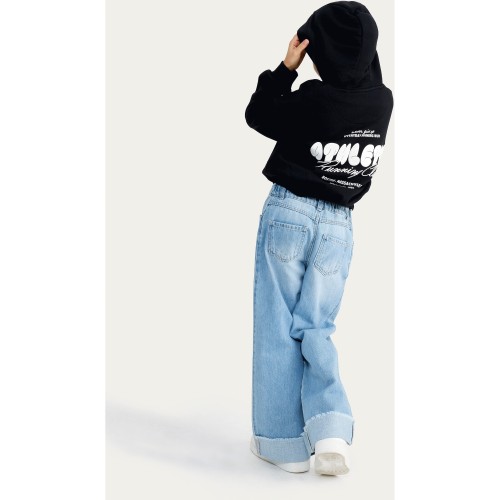 F&F Girls Cotton Rich Athletic Running Club Oversized Hoodie in Black
