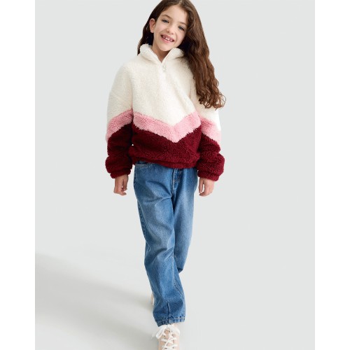 F&F Girls Borg Chevron Half Zip Jumper in Burgundy