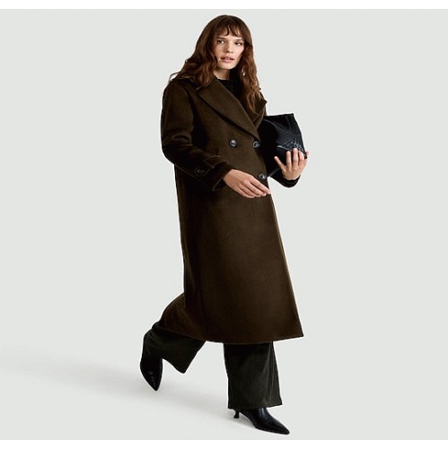 Double Breasted Long Coat in Khaki