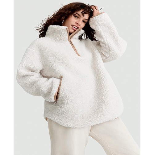 Active Fleece Textured Half Zip Pullover in Cream