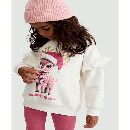 F&F Girls Cotton Rich Rudolf's Bestie Slogan Sweatshirt in Cream
