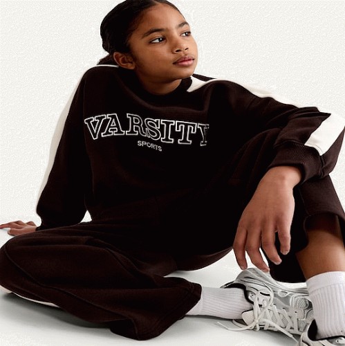 F&F Active Girls AFTERCLASS 2-Piece Slogan Sweatshirt and Joggers Set in Brown