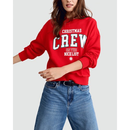Cotton Rich Christmas Crew Slogan Sweatshirt in Red