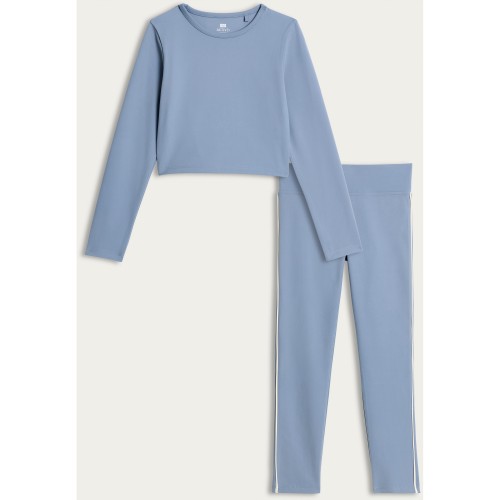 F&F Active Girls ULTRAMOVE 2-Piece Long Sleeved Crop Top and Leggings Set in Blue