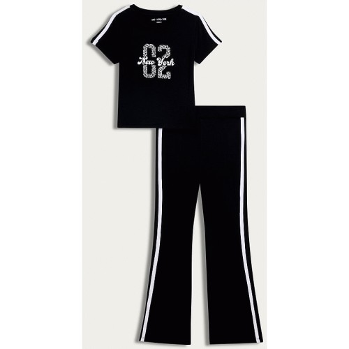 F&F Girls 2-Piece New York T-Shirt and Flared Leggings Set in Black