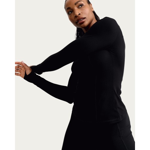 Active EVERYHOUR Ribbed Long Sleeved Top in Black