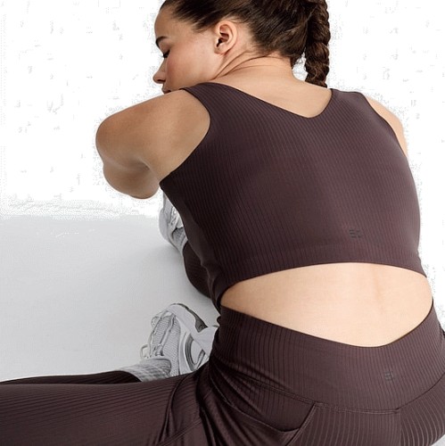 Active Quick Dry Ribbed Crop Top in Brown