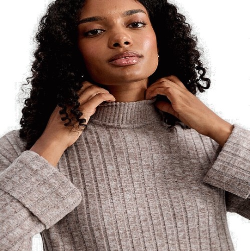 Premium Ribbed High Neck Jumper With Cashmere in Brown