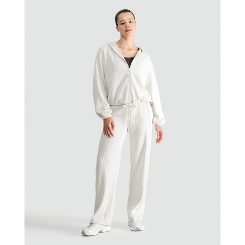 Active Ribbed Wide Leg Drawstring Joggers in Cream