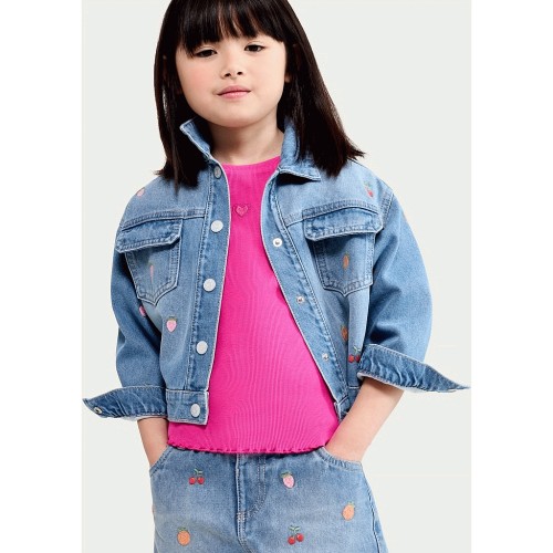 F&F Girls Cotton Rich Ribbed Heart Embroidered T-Shirt in Berry