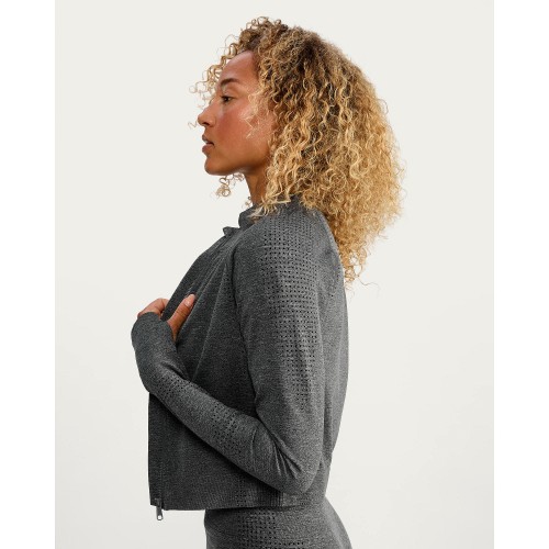 Active Seamfree Zip Up Sports Jacket in Grey Marl