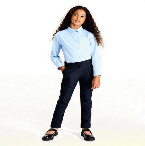 F&F School Girls 2-Pack Regular Fit Trousers in Navy