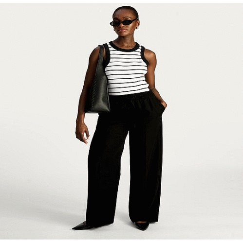 The F&F Edit Faux Leather Wide Leg Drawstring Trousers in Black