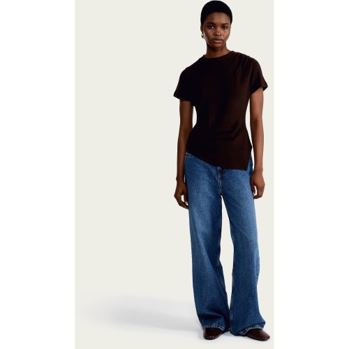 Asymmetric Ruched Short Sleeved T-Shirt in Brown