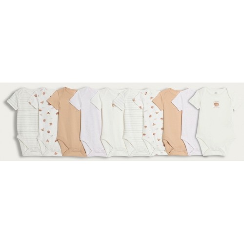 F&F Baby 10-Pack Pure Cotton Short Sleeved Bodysuits in Multi