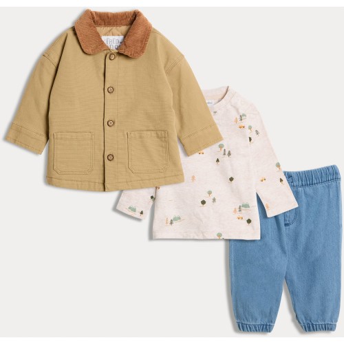3-Pack Cotton Rich Jacket Top and Trousers Set in Tan