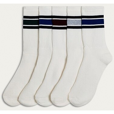5-Pack Cotton Rich Stripe Print Sports Socks in White