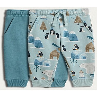 2-Pack Cotton Rich Polar Animal Print Joggers in Turquoise