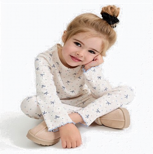 Girls 2-Pack Cotton Rich Bow Print Pyjama Set in Blue