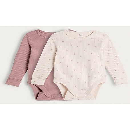 2-Pack Cotton Rich Ribbed Long Sleeved Bodysuits in Pink