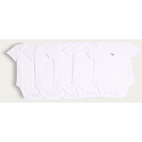 5-Pack Pure Cotton Animal Print Bodysuits in White