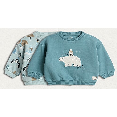 2-Pack Cotton Rich Arctic Print Sweatshirts in Turquoise
