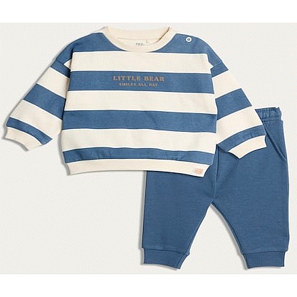 2-Piece Cotton Rich Little Bear Stripe Print Sweatshirt and Joggers Set in Navy