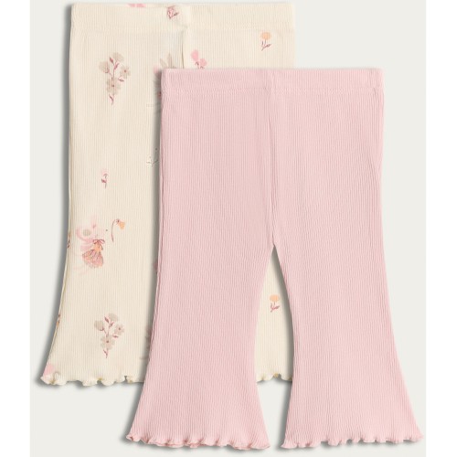2-Pack Cotton Rich Ribbed Flared Leggings in Pink