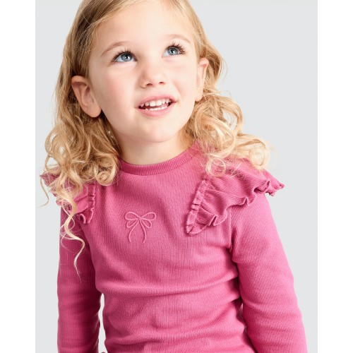 F&F Girls 2-Pack Cotton Rich Ribbed Long Sleeved Tops in Multi Pink