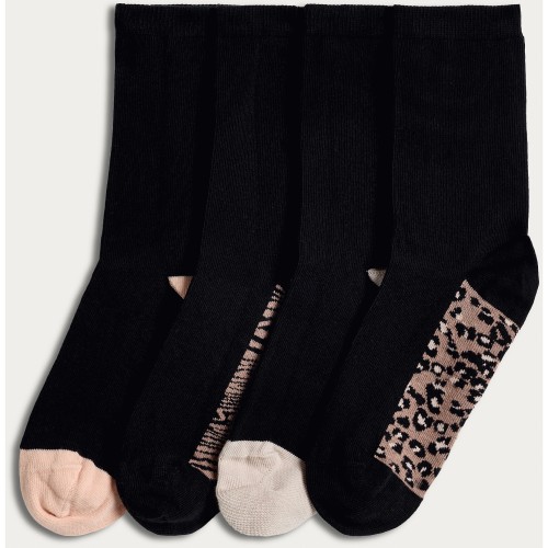 4-Pack Cotton Rich Animal Print Antibacterial Socks in Multi