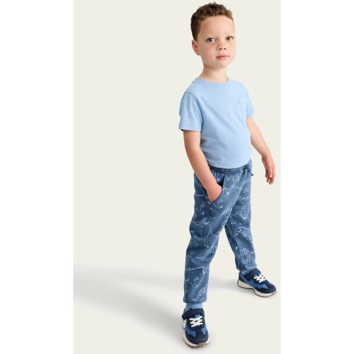 F&F Boys Cotton Rich Dinosaur Print Cuffed Joggers in Blue