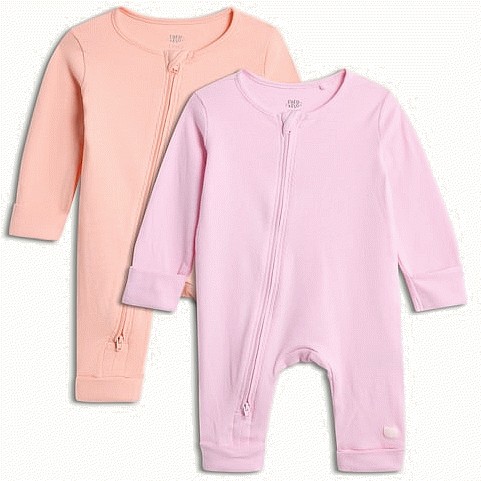 2-Pack Cotton Rich Ribbed Zip Up Sleepsuits in Pink