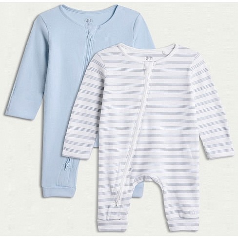 2-Pack Cotton Rich Ribbed Zip Up Sleepsuits in Blue