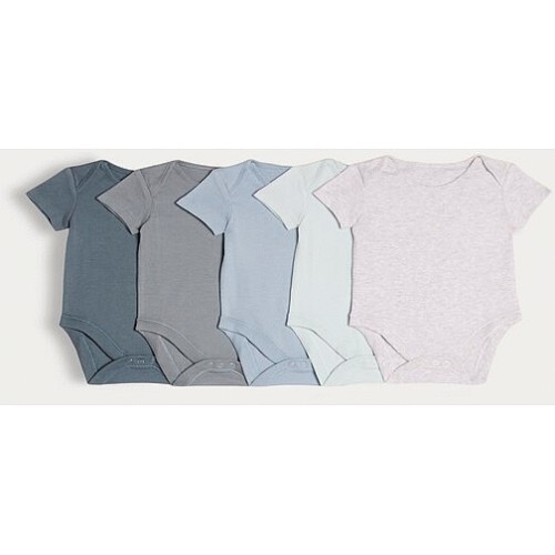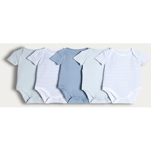 5-Pack Pure Cotton Short Sleeved Bodysuits in Blue