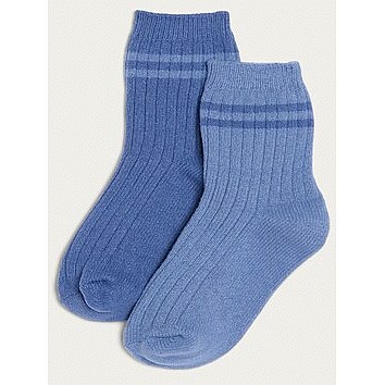 Boys 2-Pack Ribbed Ankle Socks in Blue