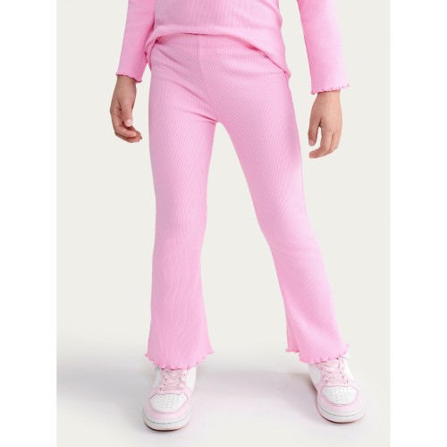 F&F Girls Cotton Rich Ribbed Flared Leggings in Pink